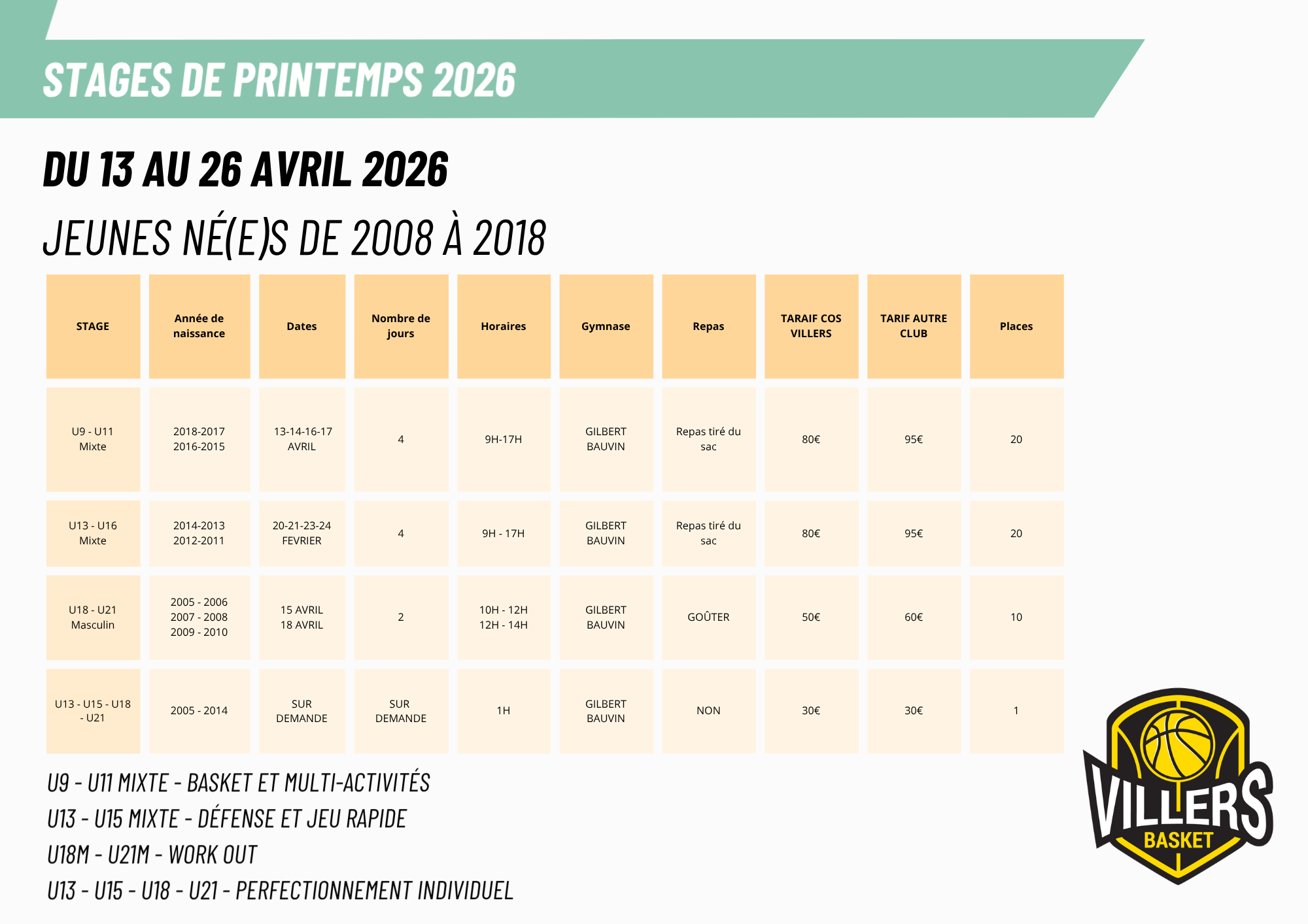 Les inscriptions se feront sur la plateforme Helloasso en cliquant sur les boutons "S'INSCRIRE" accessible sous le descriptif de chaque stage. ATTENTION, il faudra nous envoyer aussi la fiche sanitaire par mail contact@cosvillersbasket.fr