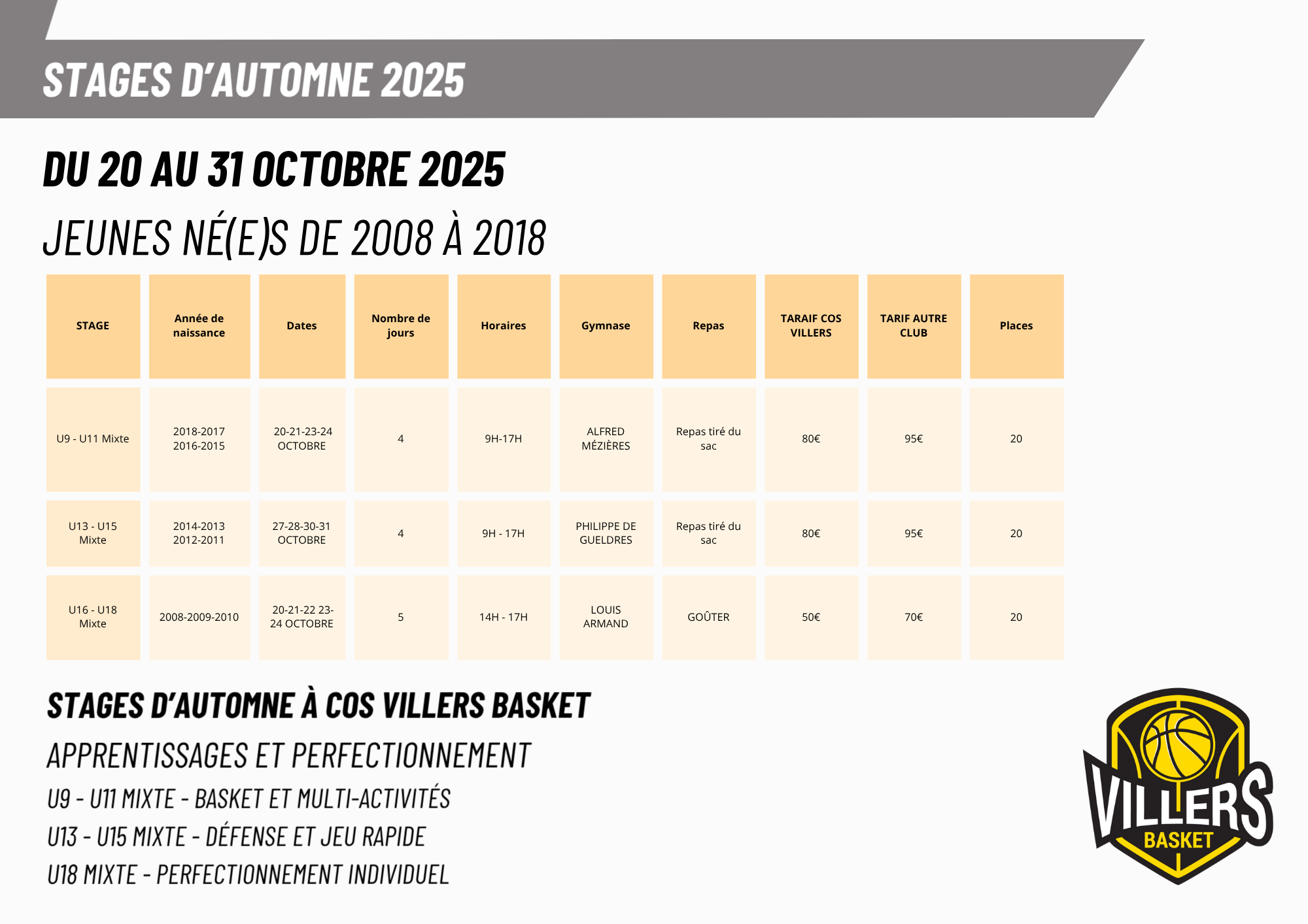 Les inscriptions se feront sur la plateforme Helloasso en cliquant sur les boutons "S'INSCRIRE" accessible sous le descriptif de chaque stage. ATTENTION, il faudra nous envoyer aussi la fiche sanitaire par mail contact@cosvillersbasket.fr